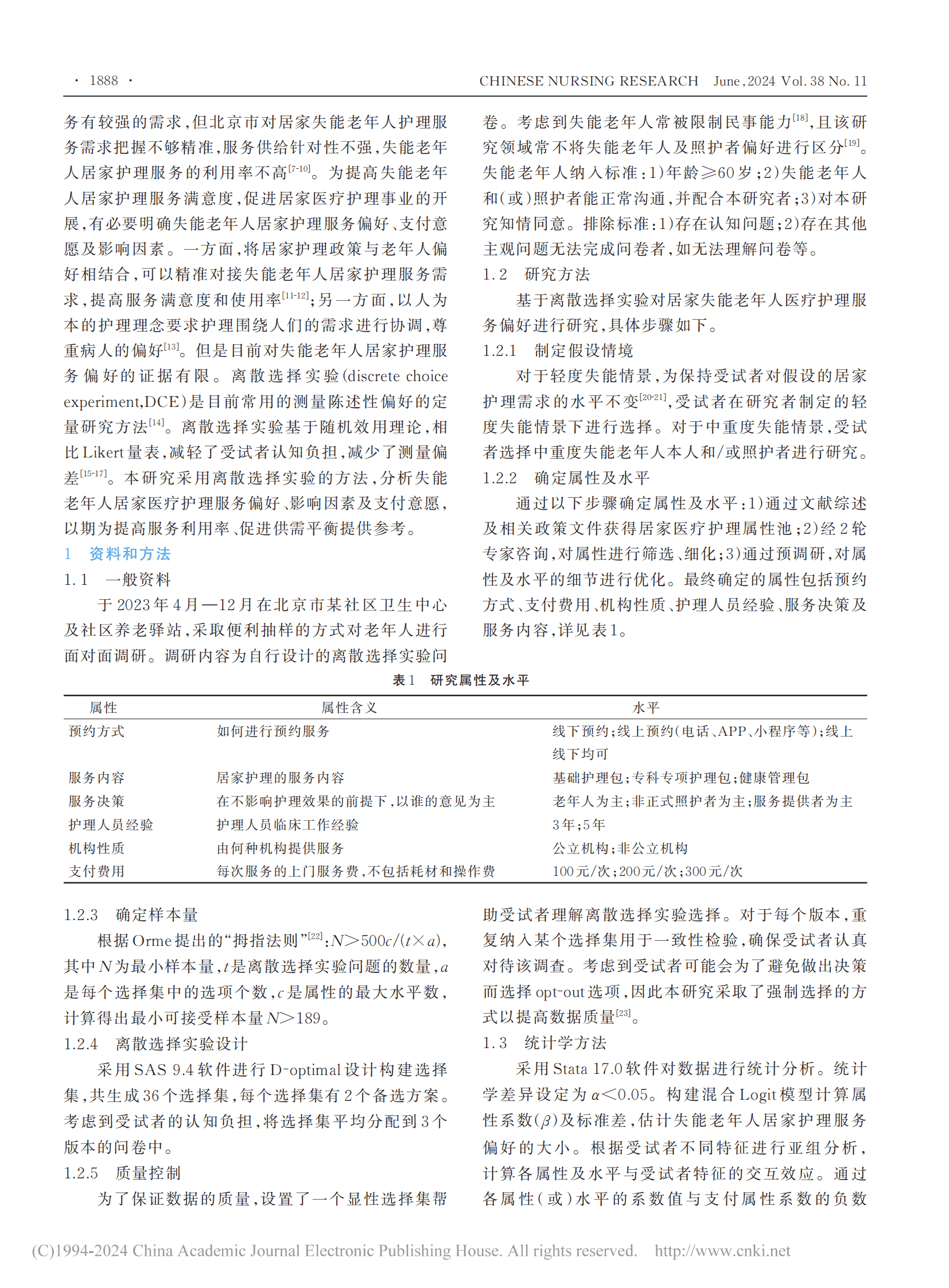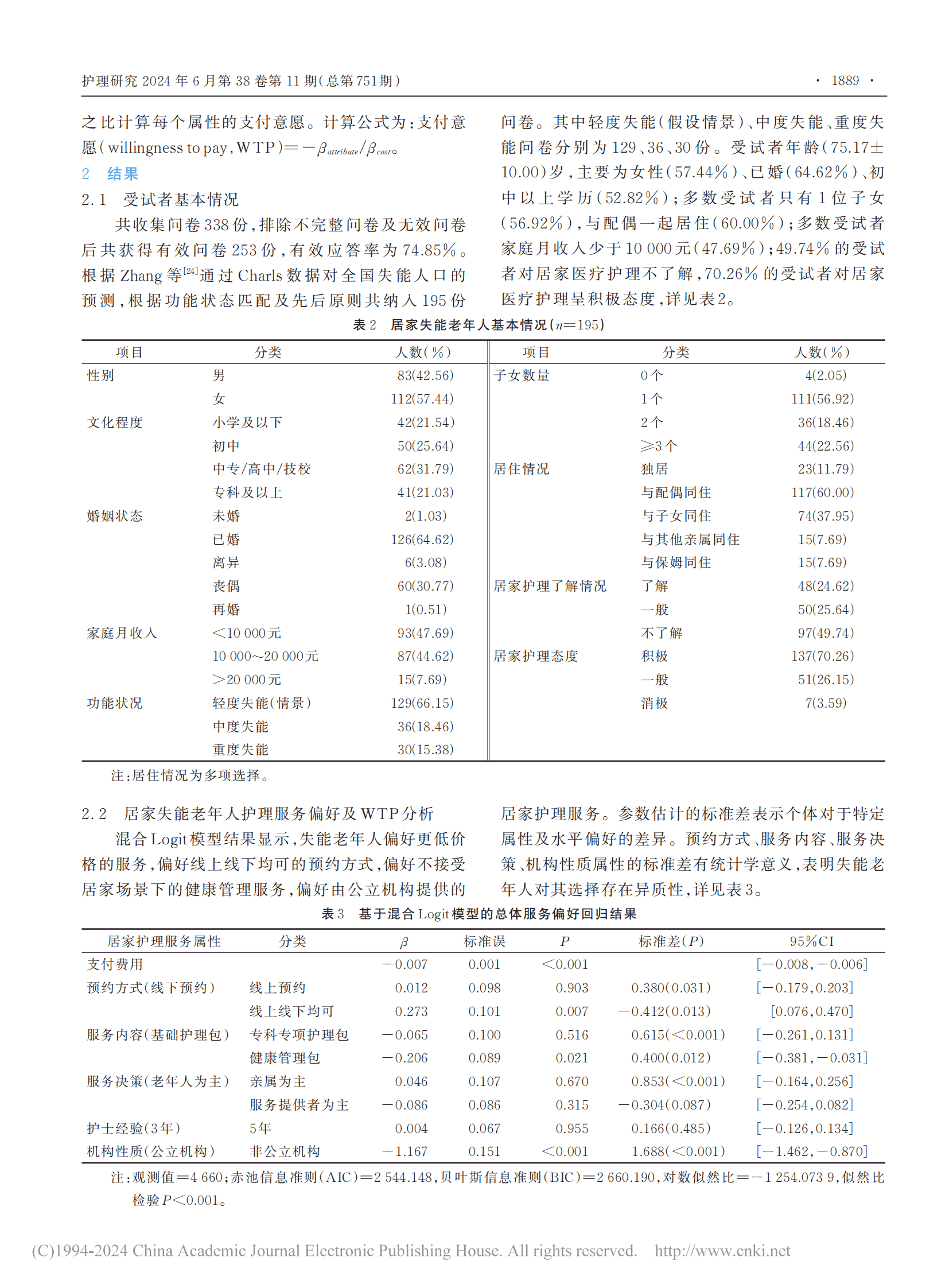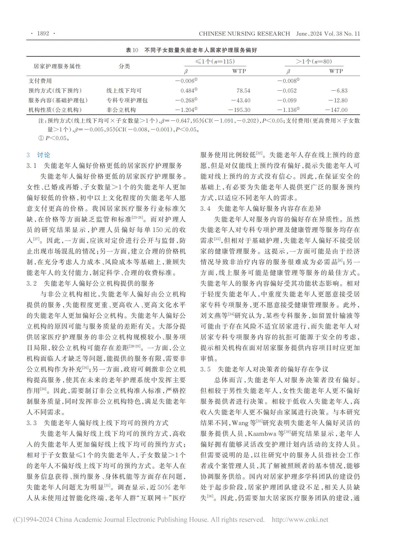 基于离散选择实验的北京市失能老年人居家医疗护理服务偏好研究