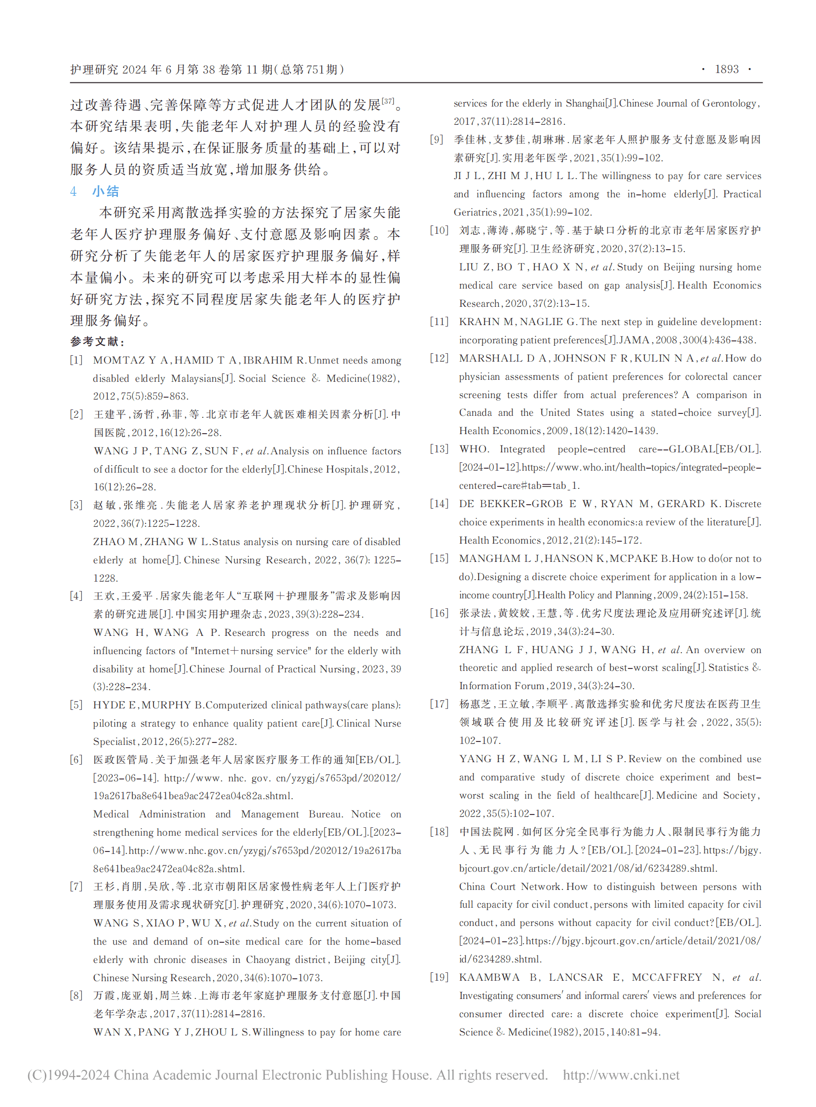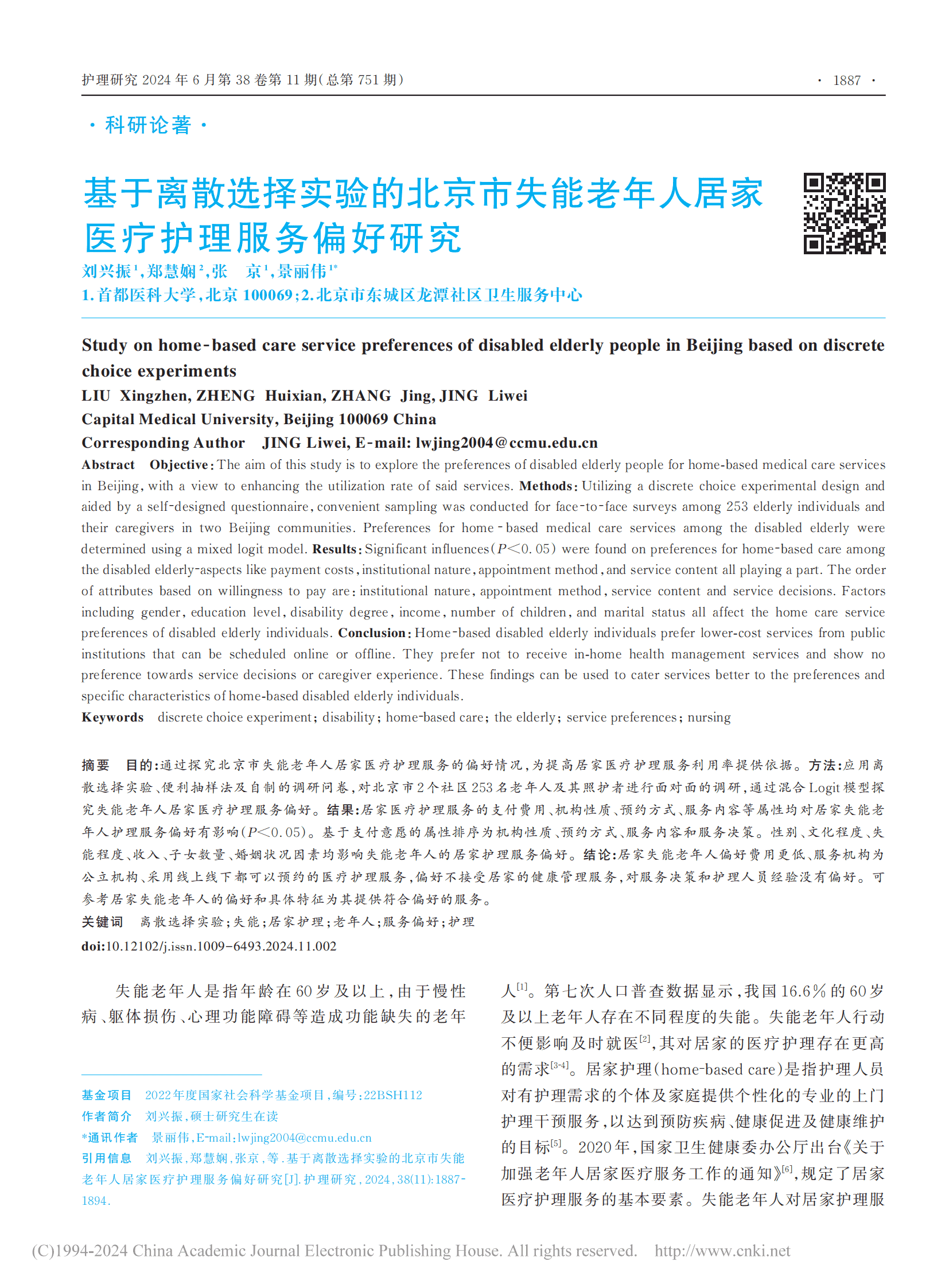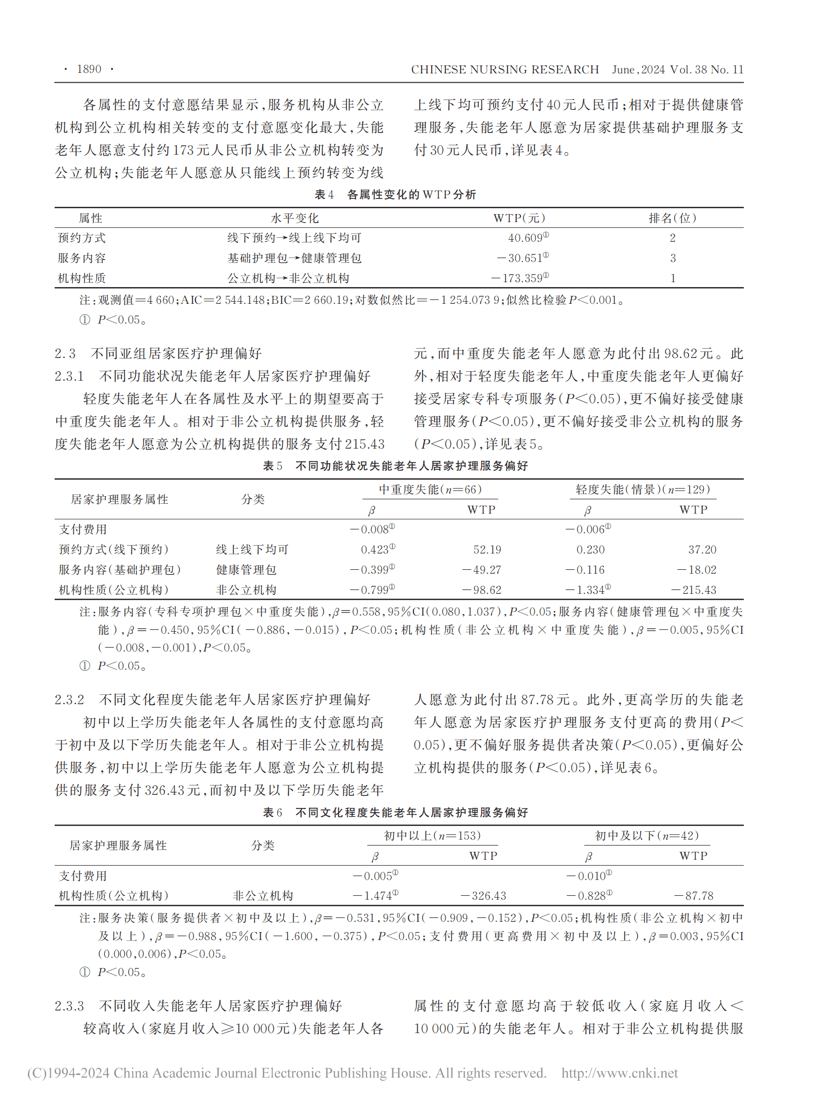 基于离散选择实验的北京市失能老年人居家医疗护理服务偏好研究
